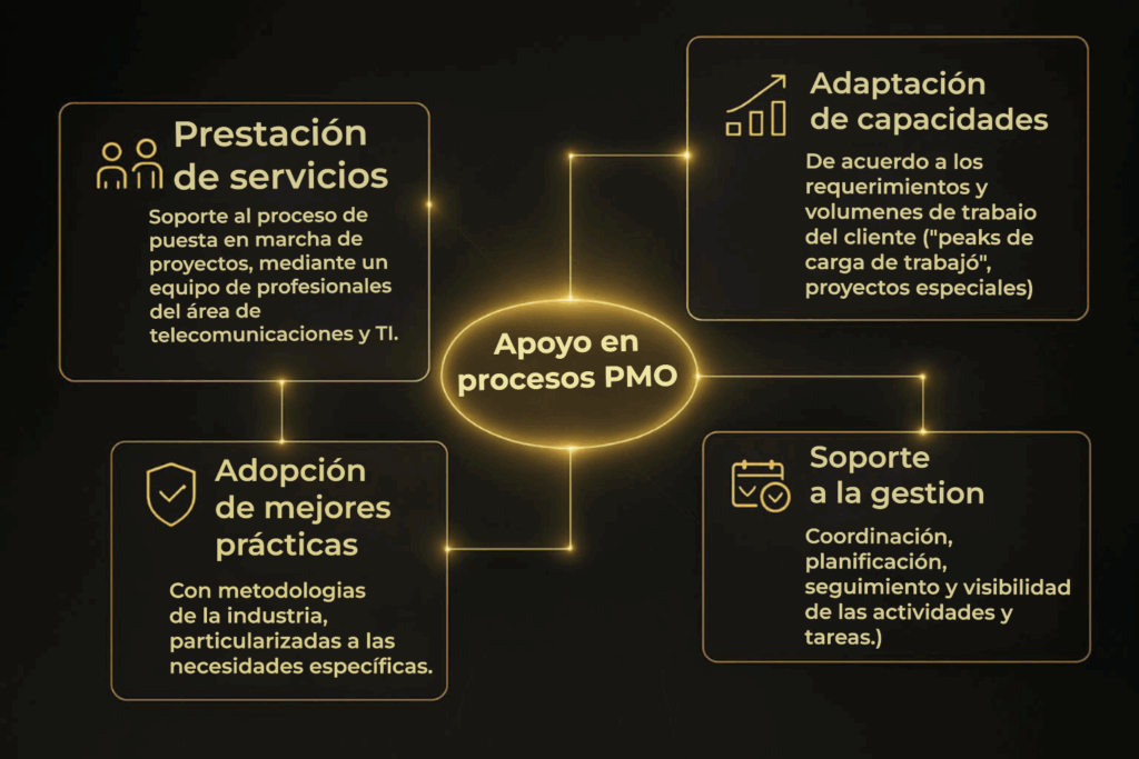 Administramos profesionalmente la gestión de planificación, ejecución y riesgos de la cartera de proyectos de nuestros clientes para que resulten exitosos en plazo, costo y resultados.